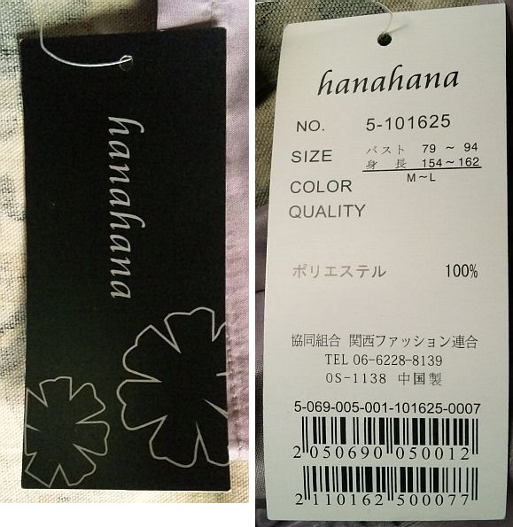 ポリエステル100%、関西ファッション連合製、中国製です。