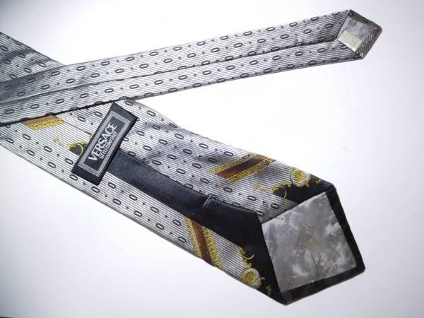 『VERSACE ベルサーチ』のネクタイ♪中古品(全体的に薄汚れ、使用感、スレ、シワ箇所あり)です。サイズは9.3cm(剣先)です。 |