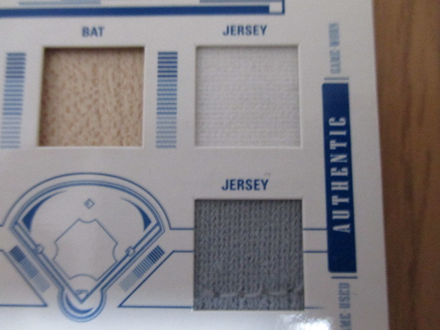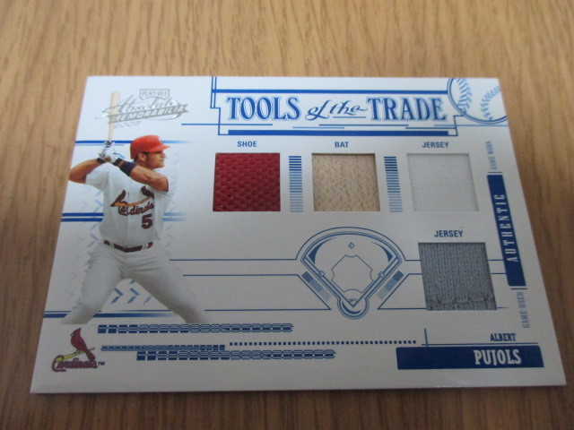 アルバート・プホールズがMLBのゲームで実際に使用したバット&ホームジャージ&ビジタージャージ&パンツがインサートされたカードです。シリアルナンバー15/50。