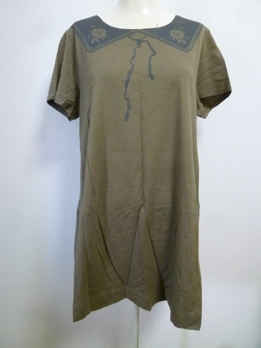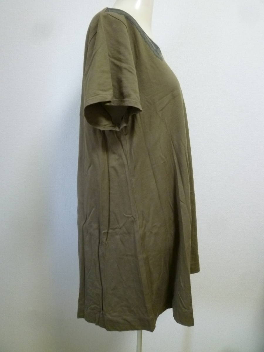 Syrup/フェリシモ♪茶系レースリボンプリントロングTシャツワンピースLL/ブラウン系チュニック半袖♪328