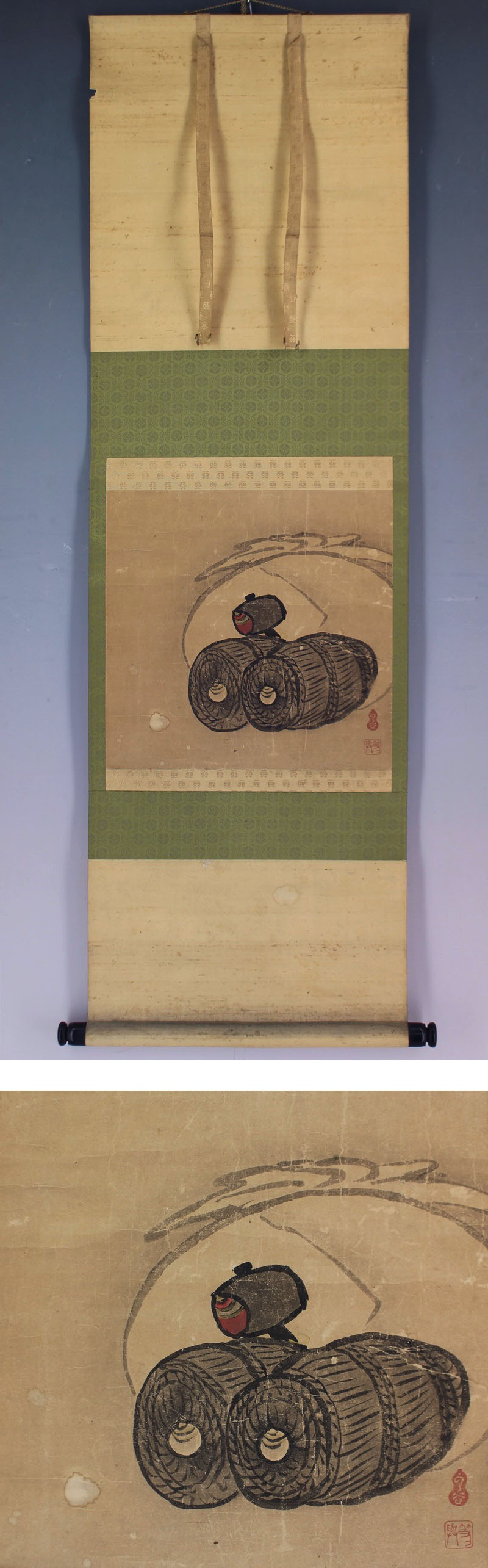 | 商品について | 雲谷等興 慶長17生まれ。雲谷等益の長男。山口県長門の人。寛永21年雲谷派宗家を継ぎ雪舟五代を称した。 寛文8年死去、57歳 本紙は、ヤケ、シミ、汚れ、折れ、スレがあります。 表装は、ヤケ、シミ、汚れ、折れ、破れ、虫食いがあります。 【サイズ】 作品 横約32cm×縦約31.5cm 表装 横約36cm×縦約106.5cm |