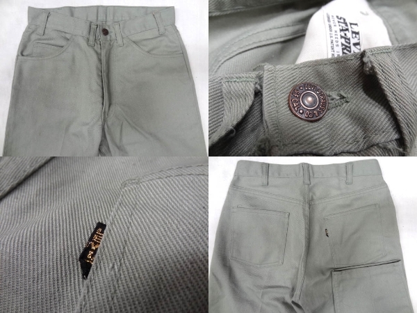 色は淡いカーキ系,ライトグリーンのような色味です。リーバイスではおそらくこの年代のこのタイプのものにしか用いられていない色だと思います
