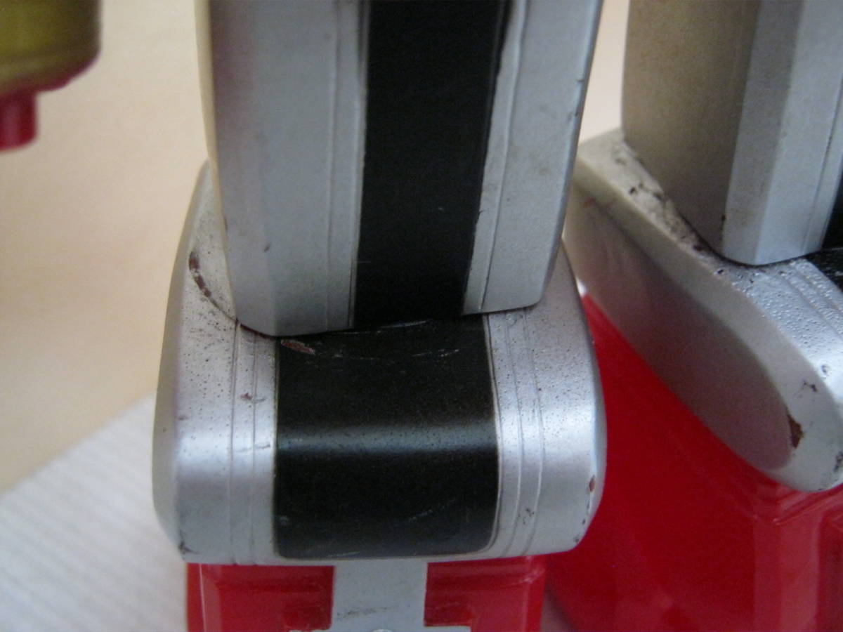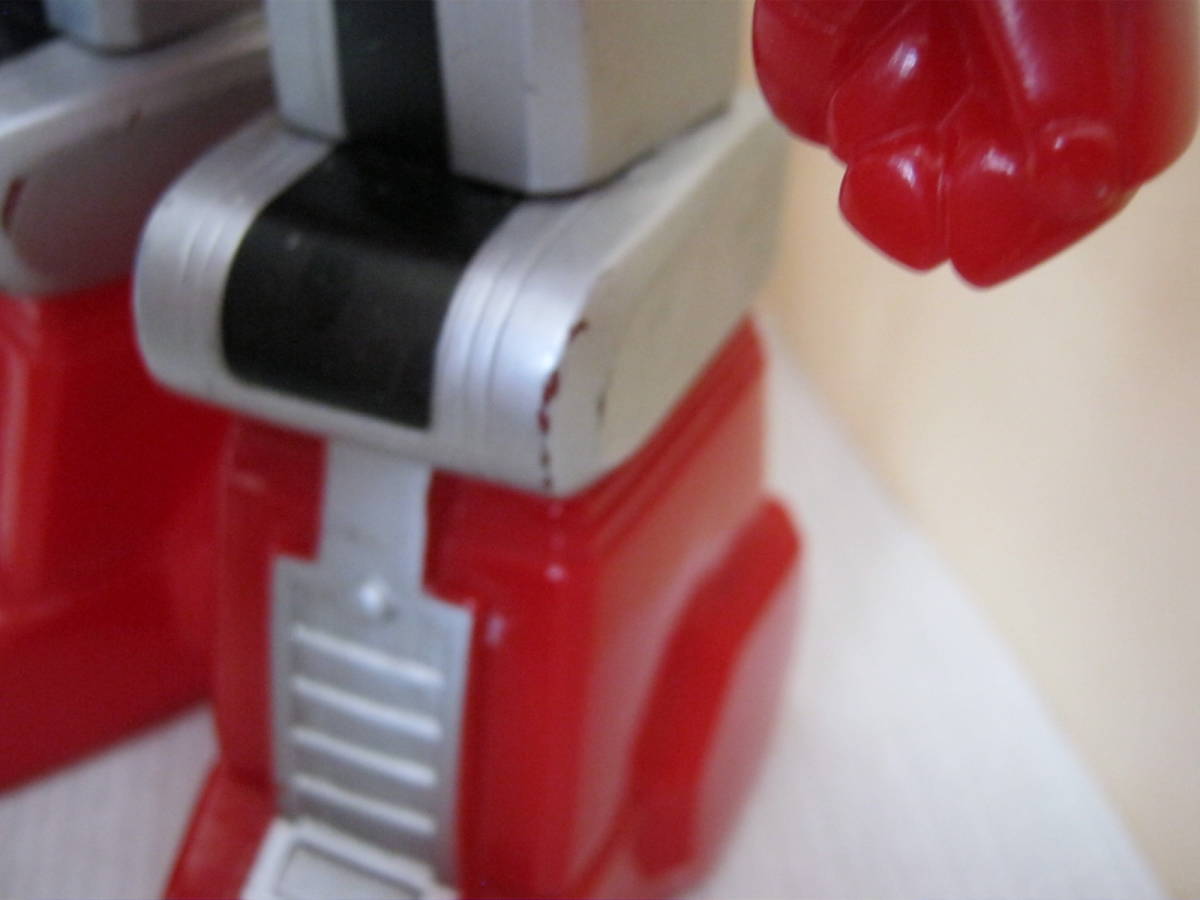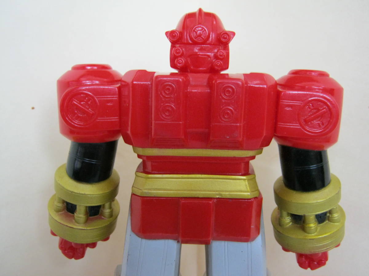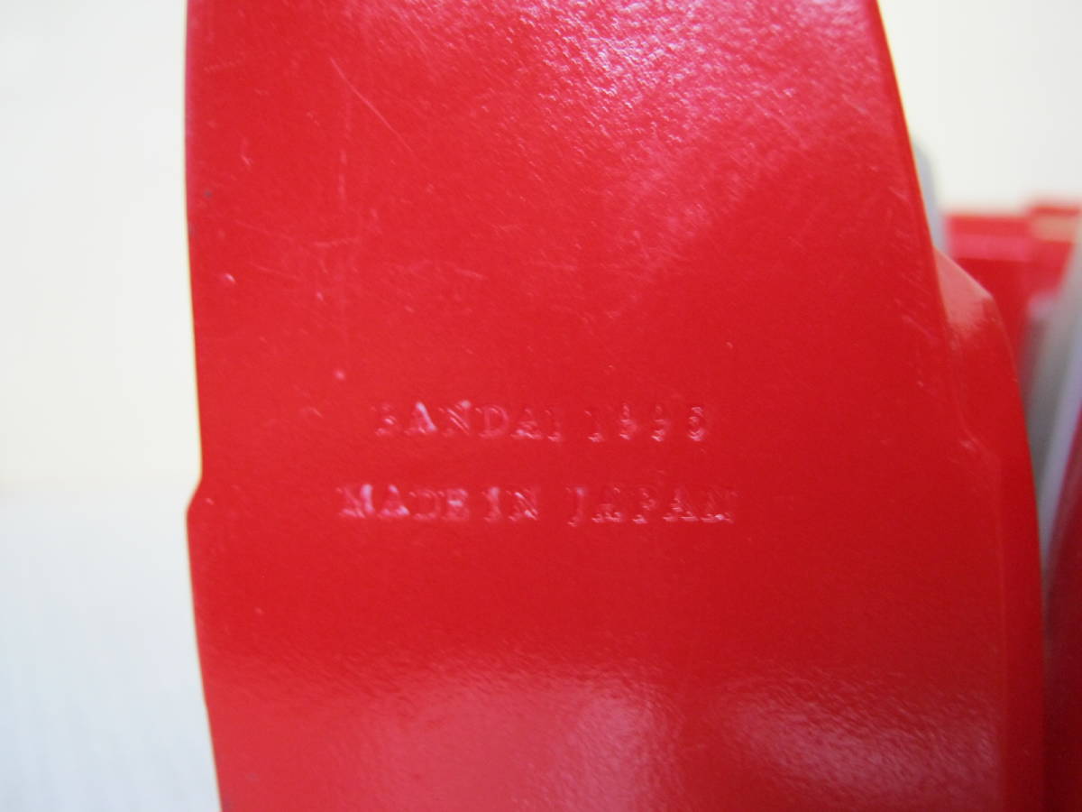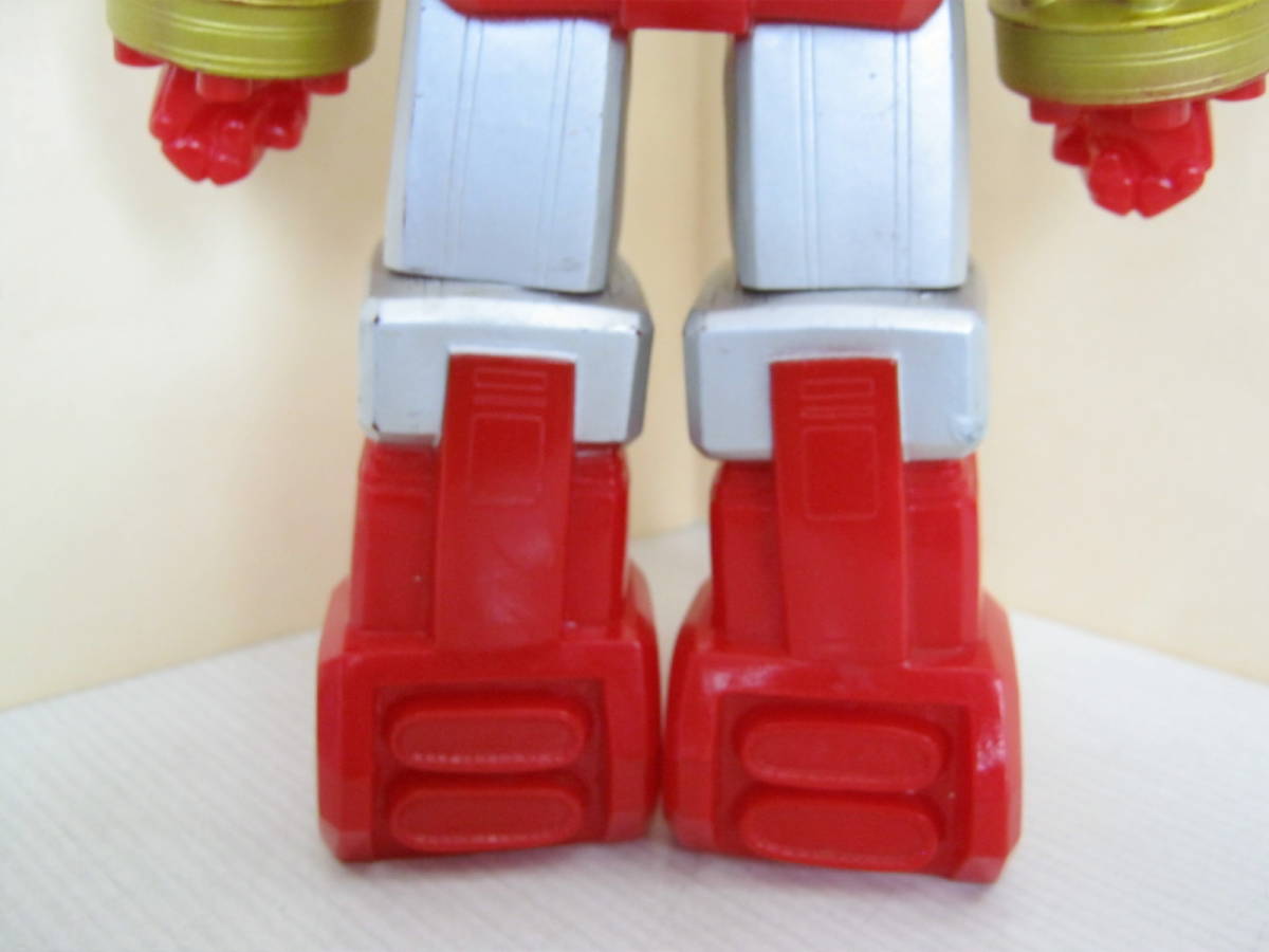 当時物、本体のみです。本体に汚れ、キズ、スレ、色ハゲがあります。破損、欠品はありません。サイズは約22.5㎝位です。本体の左右の腕を上げ下げできます。左右の肘から手の部分まで回転させることができます。左右の足のヒザから外側に開くことができます。左右の足の底面に刻印があります。刻印は左足の底面には丸の中にCの文字テレビ朝日・東映 右足の底面にはBANDAI 1995 MADE IN JAPAN(日本製)以上の刻印があります。