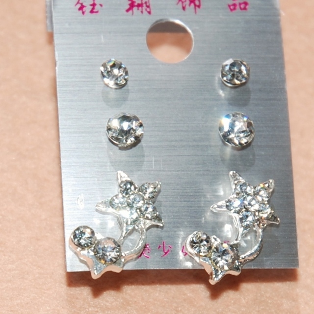 クリアストーンでデザインされたかわいいスタッドピアス、3点セットです♪