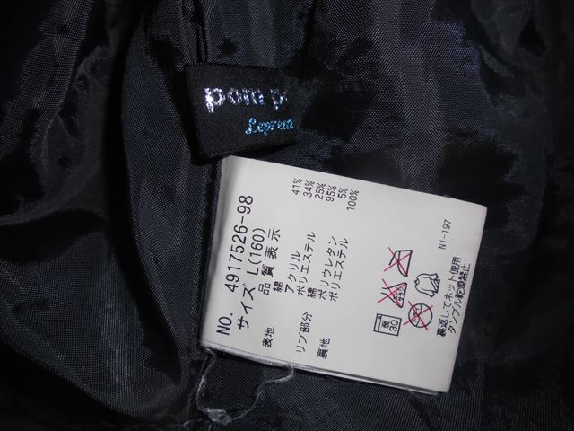 素材 綿41、アクリル34、ポリエステル25%、裏地ポリエステル100%