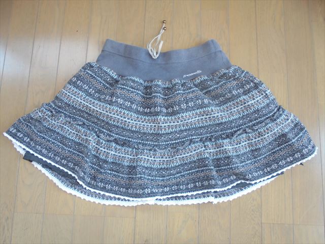 商品説明 ポンポネット★ウエストゴムのグレーのスカート、秋冬★160