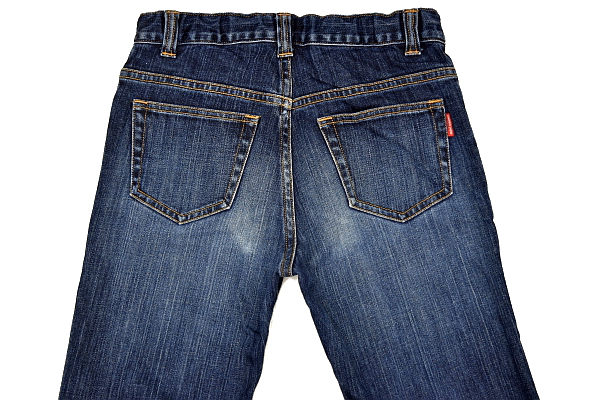 中古の商品は特に、洗濯等で縮みが出ている事が、多いですので、ウエストの両端に指を入れて、少し引っ張った状態で、ウエストをピンと伸ばして、採寸しています。ストレッチ素材のように、伸びる素材は、あまり引っ張りすぎない様に、注意しています。片側採寸ですので、数字を2倍していただけますと、胴回りの数字になります。