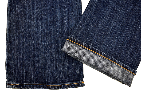 股上で合わせた、股部分の縫い合わせを基準にして、裾までの長さを計測しています。その際、縮みや、シワを考慮して、床より少し浮かせて、ピンと伸ばした状態で計測しています。