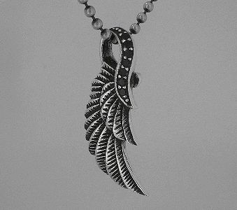 シルバー925銀のブラックジルコニア付フェザー ペンダント/シルバーアクセALL50%OFF