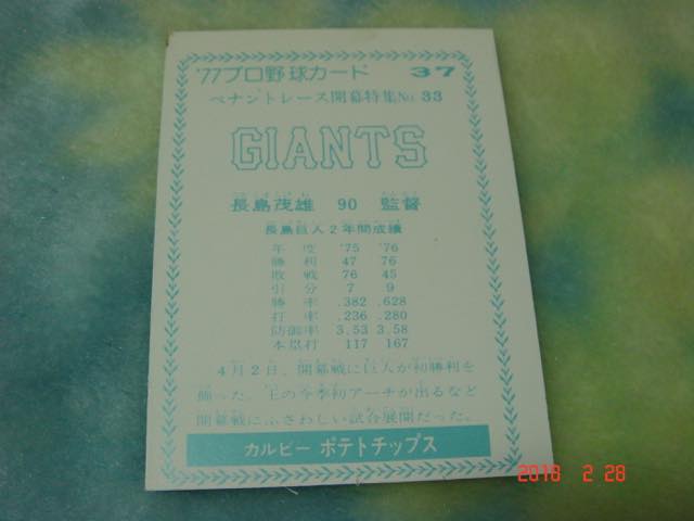 カルビー '77年 プロ野球カード NO.37 (長島監督/巨人) 青版
