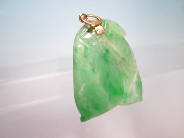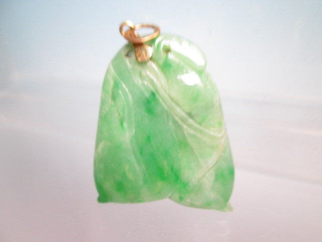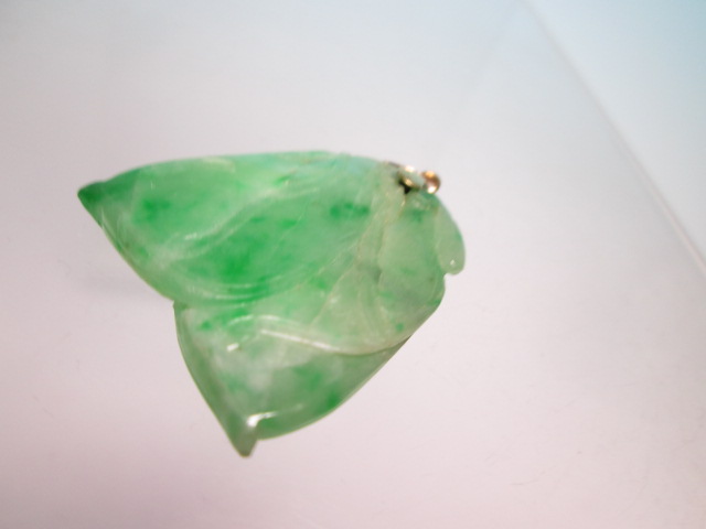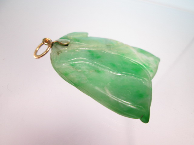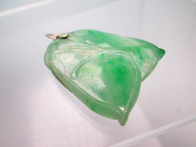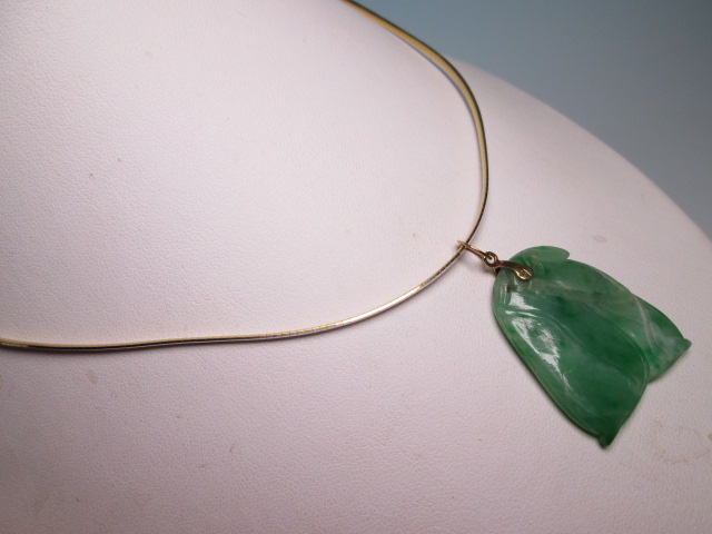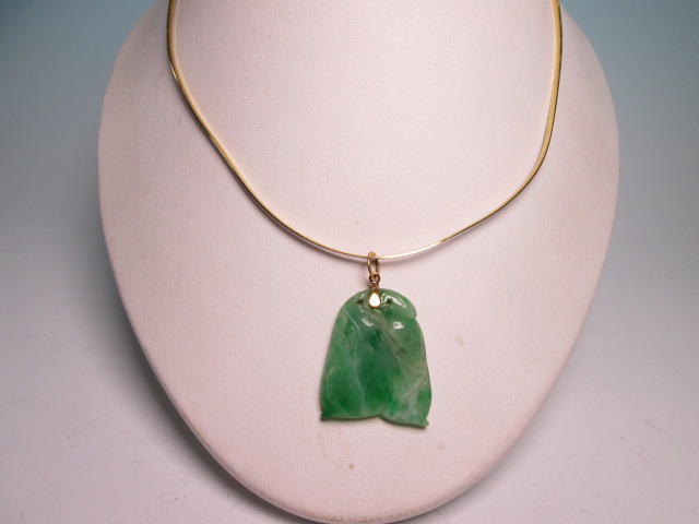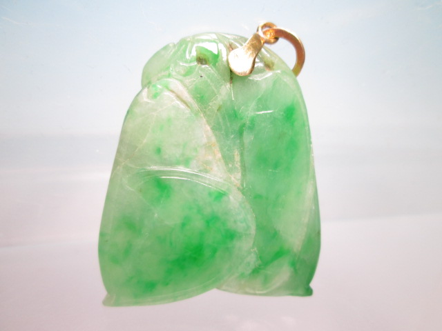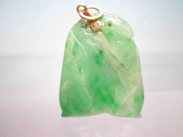 ☆アンティーク・14K 本翡翠のえんどう豆彫刻のペンダントトップ 9,76g
