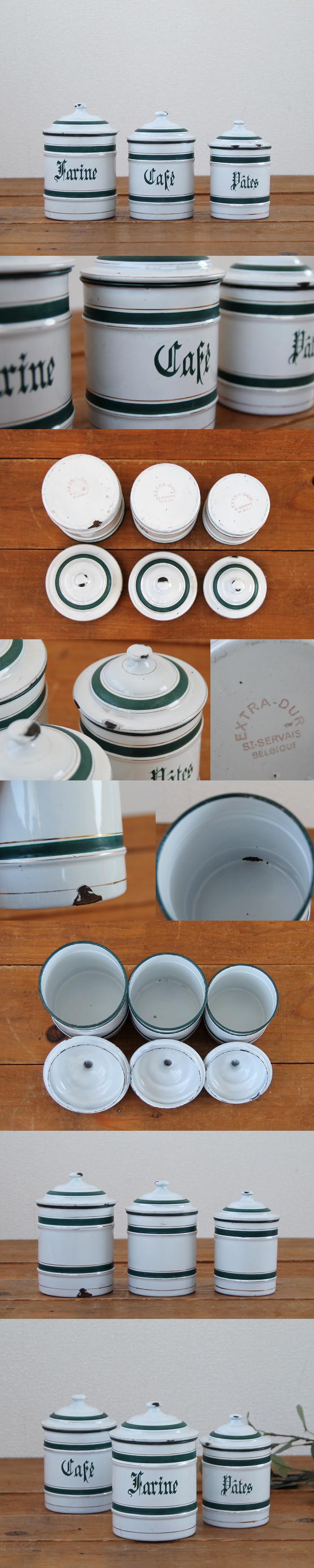 フランスからベルギー製の古いホー ローキャニスター3個セットが届きました!
