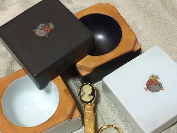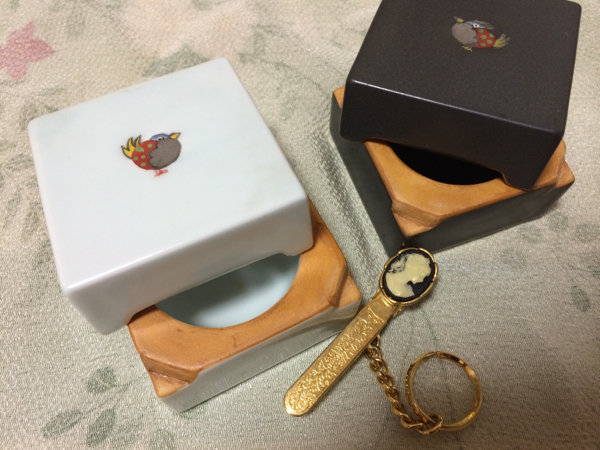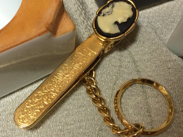 とても素敵な、カメオ付タイピン兼キーホルダー(本体長さ:約6.5cm)&陶製小鳥柄黒/白小物入(約6×6×5cm/カフス入れにも便利です)セット、未使用のお品ですが、小物入は完品ではありませんので、ご了承ください。共に新品ではありませんので、詳細はご了承ください!