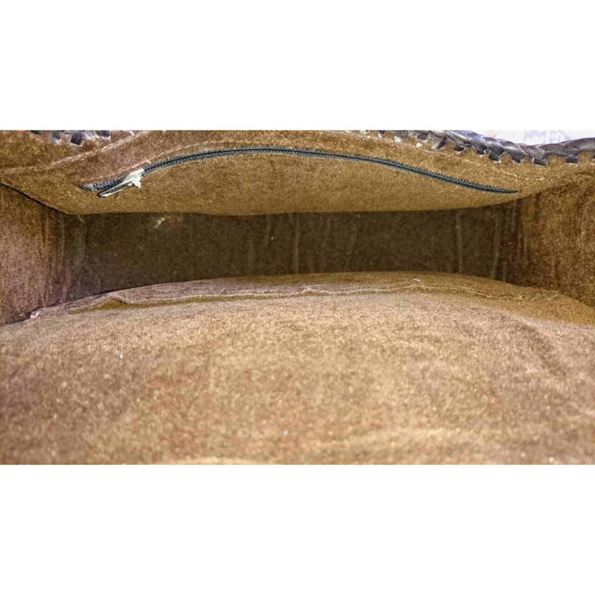 内側蓋部分白くなっている箇所ございますが、生地にバッグのデザインの跡がついているだけです。