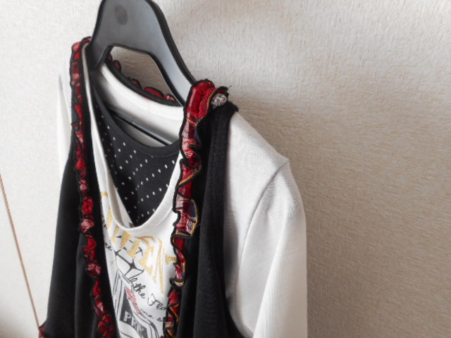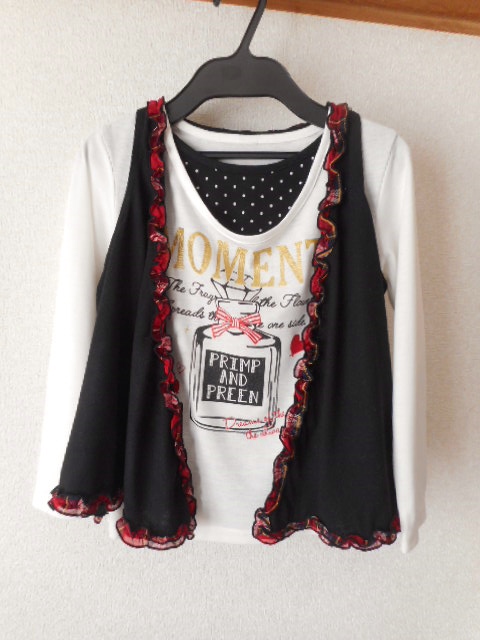 ★美品★背中にリボンが付いたフリルのベスト&長袖Tシャツ サイズ130   ☆ベスト・カットソー