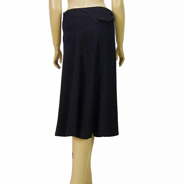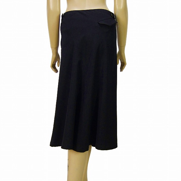 平置き採寸  スカート丈74cm、ウエスト34~36cm(左後ろボタン調節付き)、ヒップ50cm、裾幅82cm、左脇ボタン&ファスナー留 左前斜めポケット 右後ろポケット