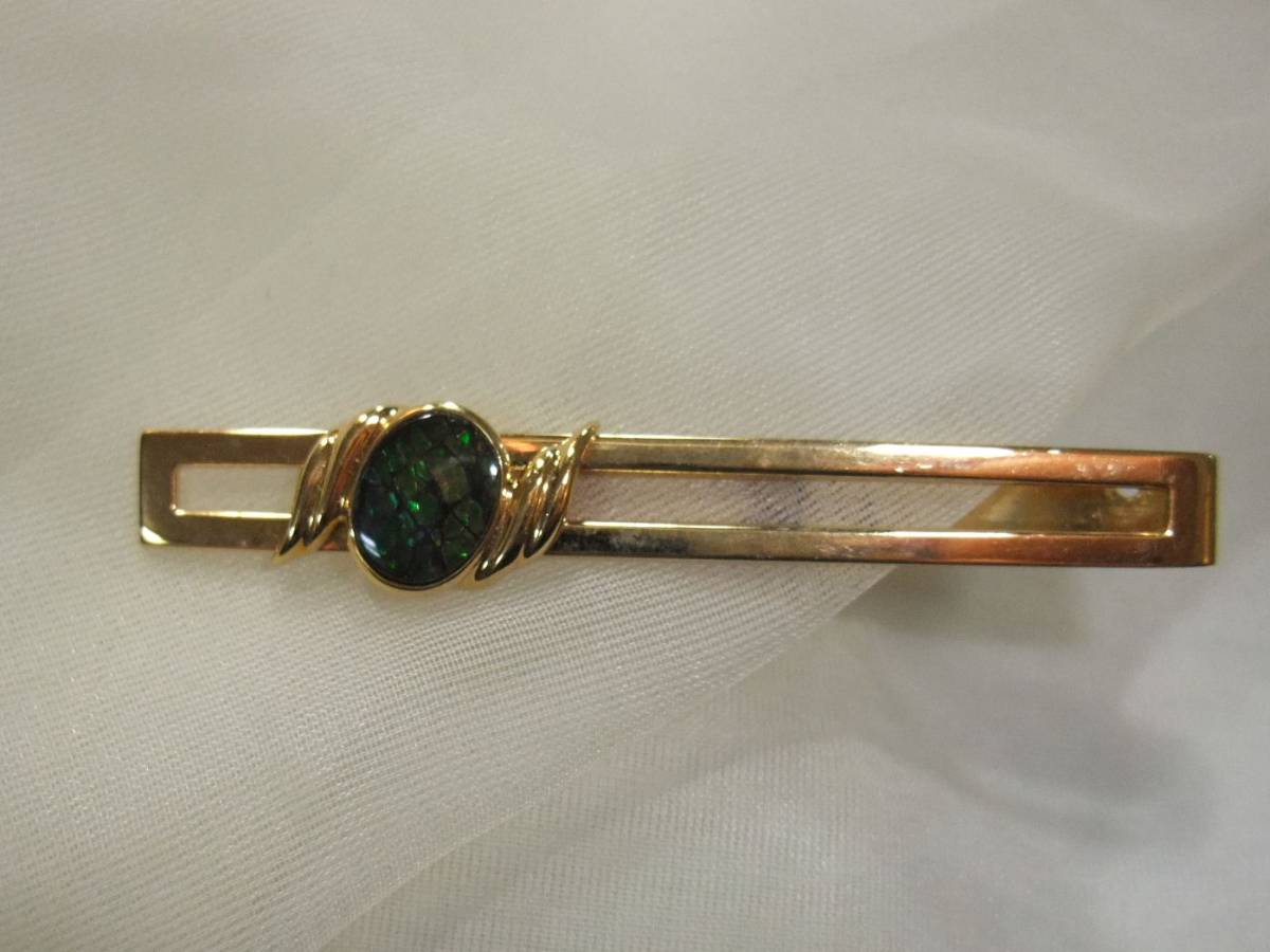 スタイリッシュなゴールドカラーメタル系♪デザインはややビンテージレトロタイプ♪クラシックなタイプの金色メタリックタイプのネクタイピンタイバー♪美品ですが古いお品で保管期間長いので多少経年感ありです☆シンプルスタイリッシュなデザインで、マネークリップ代わりに使っている若者も♪粋でちょい悪親父系や英国スタイルやビンテージアンティークデザイン系小物がお好きな方にも☆