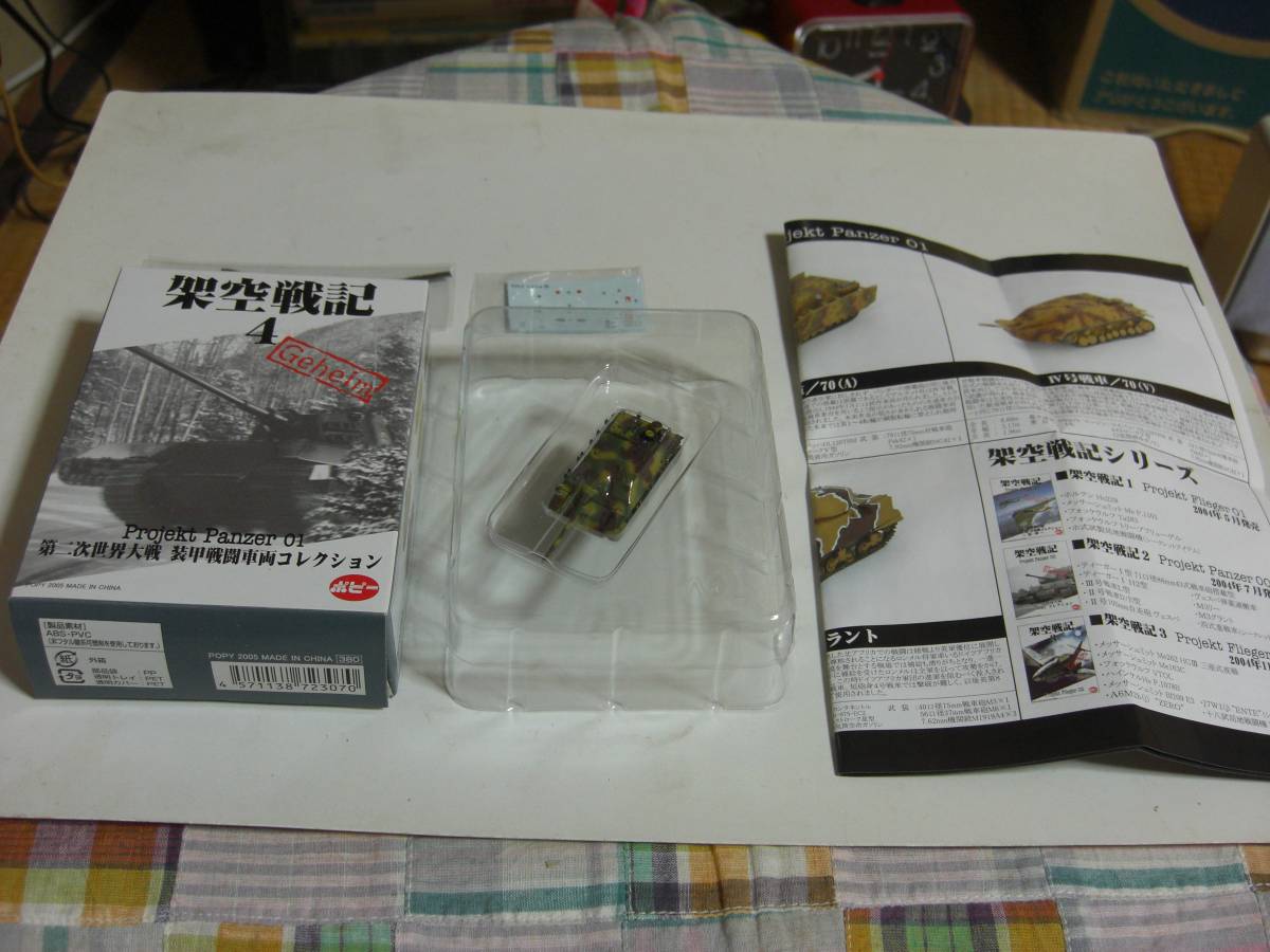 架空戦記4 projekt Panzer02/IV号戦車/70(V)/9.三色迷彩+Ⅳ号戦車台用履帯。外箱は、中身確認のため、開封済。ブリスター未開封、説明書あり。落札後はノークレーム・ノーリターンで御願いします。発送は定形外郵便もしくはゆうパックで対応させて戴きます。