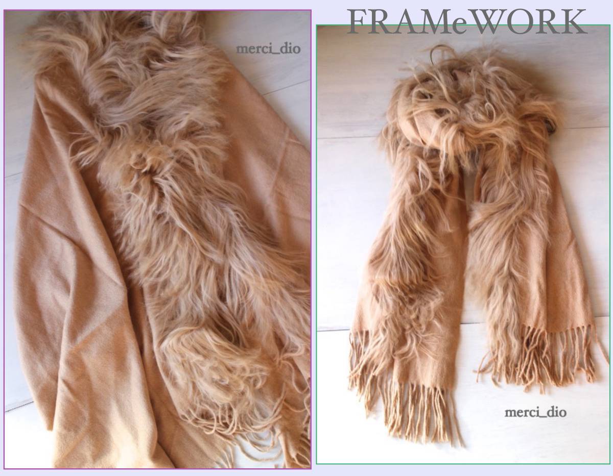 定価4.7万!フレームワーク FRAMeWORK ウール100% 羊毛ファー フロントフック 大判ストール ポンチョ マフラー ドゥーズィエムクラス