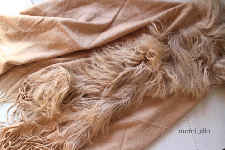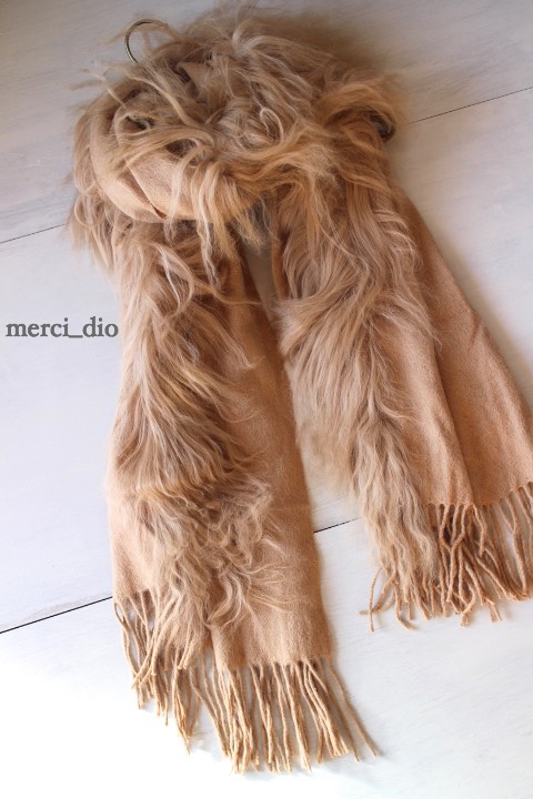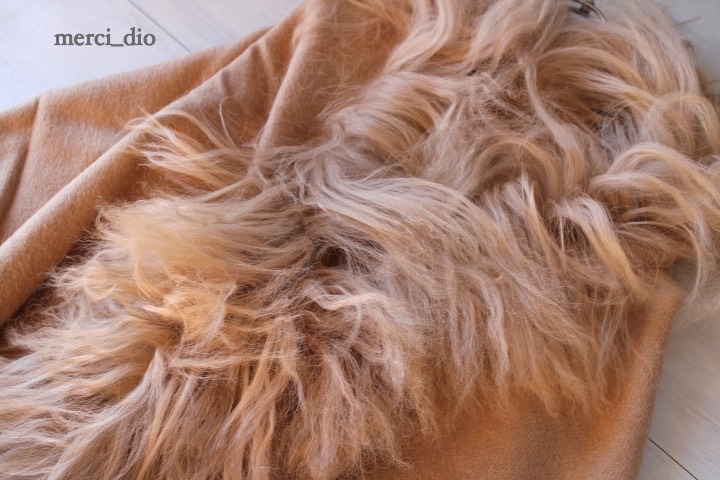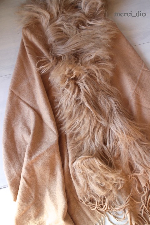 FRAMeWORKウールファー大判ストールブランケットです。フロントに大胆にデザインされたフワフワの羊毛ファー、フックで留める仕様担っています。ベースの大人っぽいベージュカラーと合わせた同系色のウールファーです。毛足長めの柔らかく軽いファーが首回りを華やかで上品にしてくれるファッションアクセサリーです。ベースもウール100%の肌触りの優しい毛足抑えめな大人な表情の素材感です。ショルダーからかけてフックで留めてもファーを纏うようにクルッと巻いても素敵なデザインストールです。大人の女性がカジュアルにもエレガントにも合わせやすい上品なベージュカラーがトレンドに左右されることなく合わせられるマストアイテムです♪