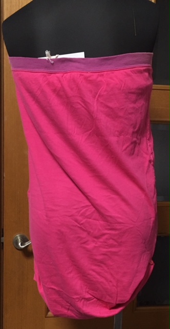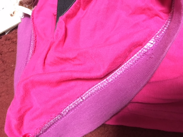 1.ベアトップの胸回りの部分の紫色のリブ生地の縫い付けステッチが少しほつれている部分があります。