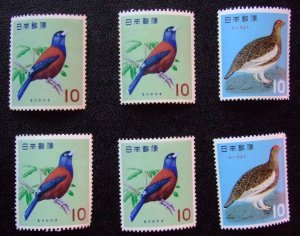 未使用 昔の切手 鳥シリーズ 1963-64年発行 2種 6枚 b + 未使用 昔の切手 普通切手 72円 シカ 5枚組 1989年シリーズ