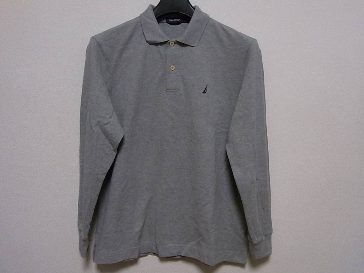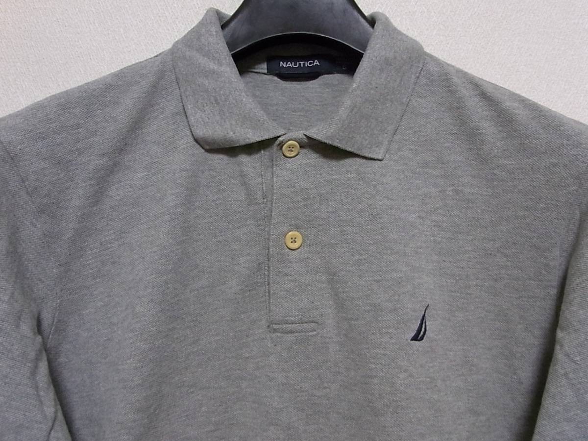 即決!USA古着●ノーティカNauticaロゴデザイン長袖ポロシャツS灰●アメカジビンテージ!
