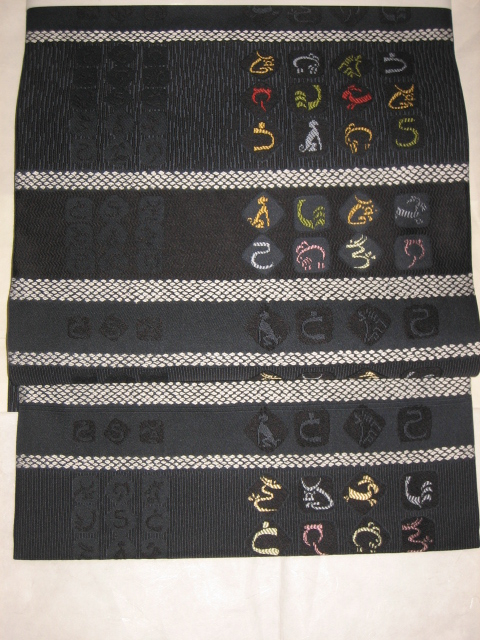 新品即決!翌日発送可能!名古屋帯(仕立て済み)08-08十二支絵、文字