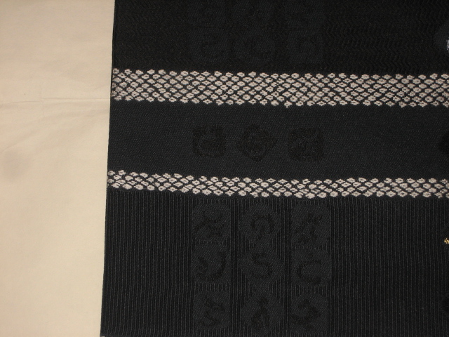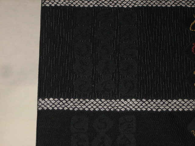 (6通柄)暗紺地。柄はたれ~太鼓~前腹部の6通柄(柄の右半分が前腹のがらになります)西陣産地証明証紙(絹100%)0829