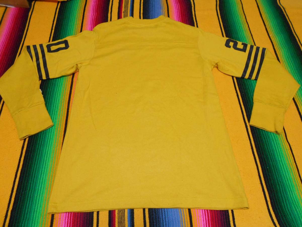 厚手コットン100%  良質なビンテージ素材感、風合いある からし の発色、タイト目なボディーとスリーブのシルエット、クラシック ナンバリング字体とアームのトリプルライン、袖先のウィングフットエンブレム、裾のターコイズブルーたたきタグ  等等...ディテールまで拘り抜いた極めて良い感じのアイテム