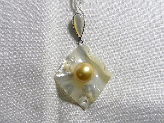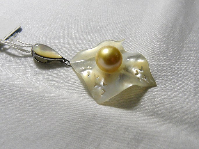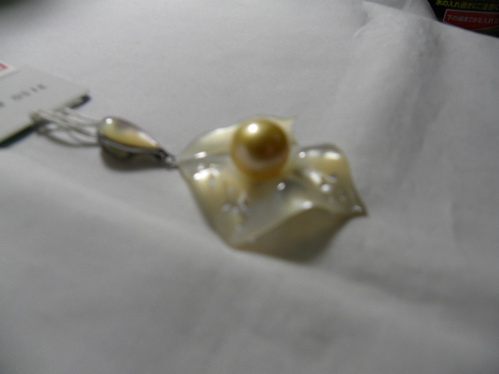 *未使用 SV白蝶貝・黄蝶貝ペンダント 黄蝶真珠11・2mm