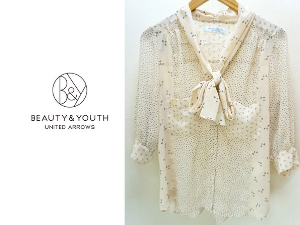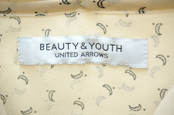 ★セール★ BEAUTY&YOUTH UNITED ARROWS ムーン総柄 ポリシャツ ブラウス シャツ ベージュ M相当 春夏 カジュアル ユナイテッドアローズ●N