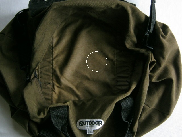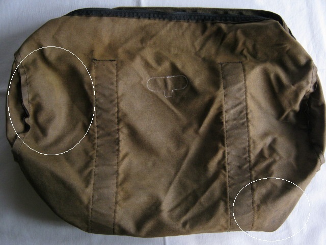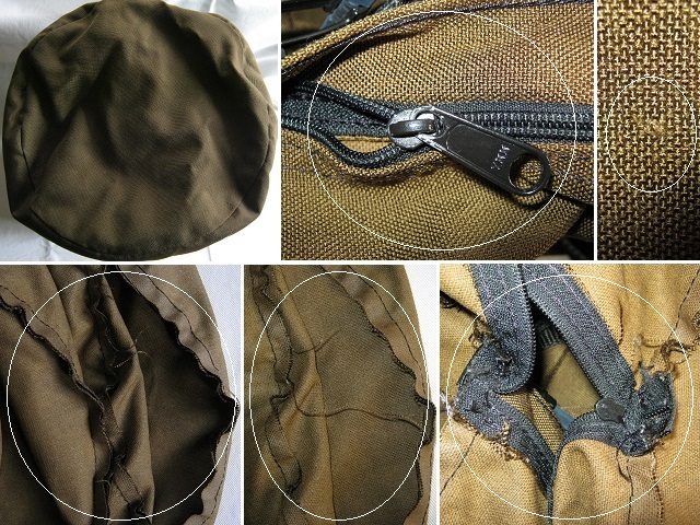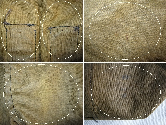 ★画像の白○以外にも表側・内側の全体的に生地のスレ・キズ・糸のほつれ・糸のはみ出し・変色・汚れ・傷みがあります。