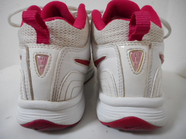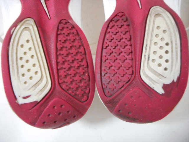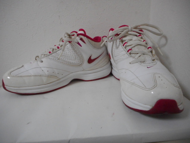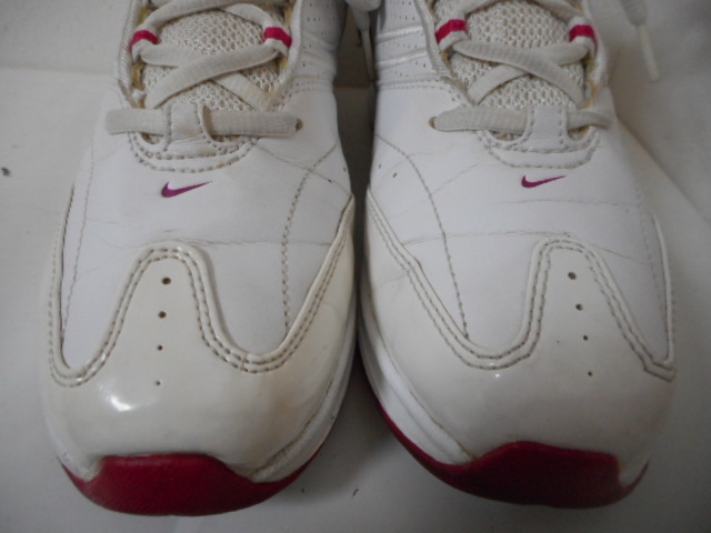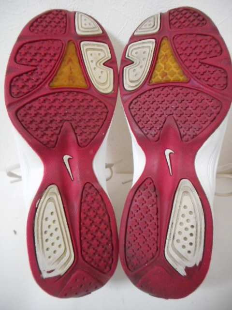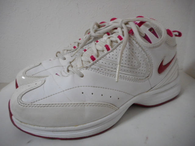 | 【ブランド・形態】 NIKE ナイキ WMNS AIR GAMBADE VII W 386194-100 サイズ25.0cmです。 【カラー】 ホワイト/ボルテージチェリーです。 掲載の実物写真はPC環境や光の加減により実物と色合いが若干異なる場合があります。 【特徴】 オールラウンドなトレーニング、エアロビクス対応モデルです。 前足部にナイキ<エア>を搭載し、クッション性を確保。MIDカット、サポート性に優れた人工皮革をアッパーに採用し、長時間のエクササイズをサポートします。 そして耐久性、摩耗性に優れるソリッドラバーを効果的に配置し、ジムからフィールドでのトレーニングまでマルチに対応。 ヒール高:約2.0cm、 最大幅:約9.5cm 【状態】 少々使用感はございますが、特に目立つダメージは見受けられず、使用に問題無いと思われます。 アッパーは比較的にきれいですがしわがあります。ソールはそれなりにすり減りがあります。 箱はありません。 【材質】 《アッパー》人工皮革+合成繊維 《ミッドソール》合成樹脂(ファイロン)+フォアフット 《アウトソール》ゴム底(ソリッドラバー) 【サイズ】 25.0cm、 質量:535g | |||