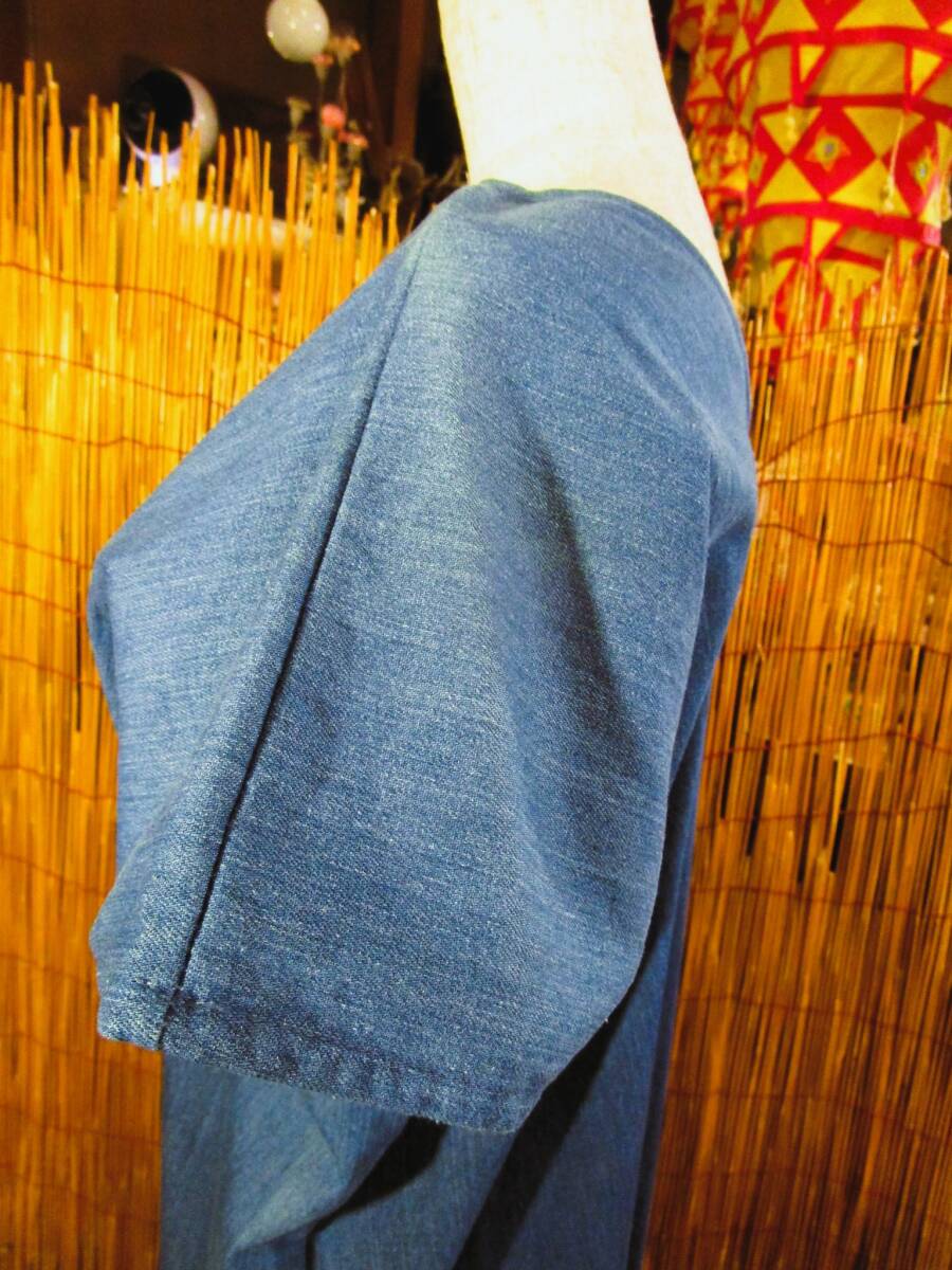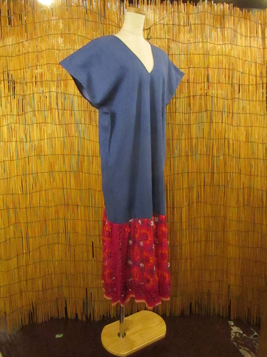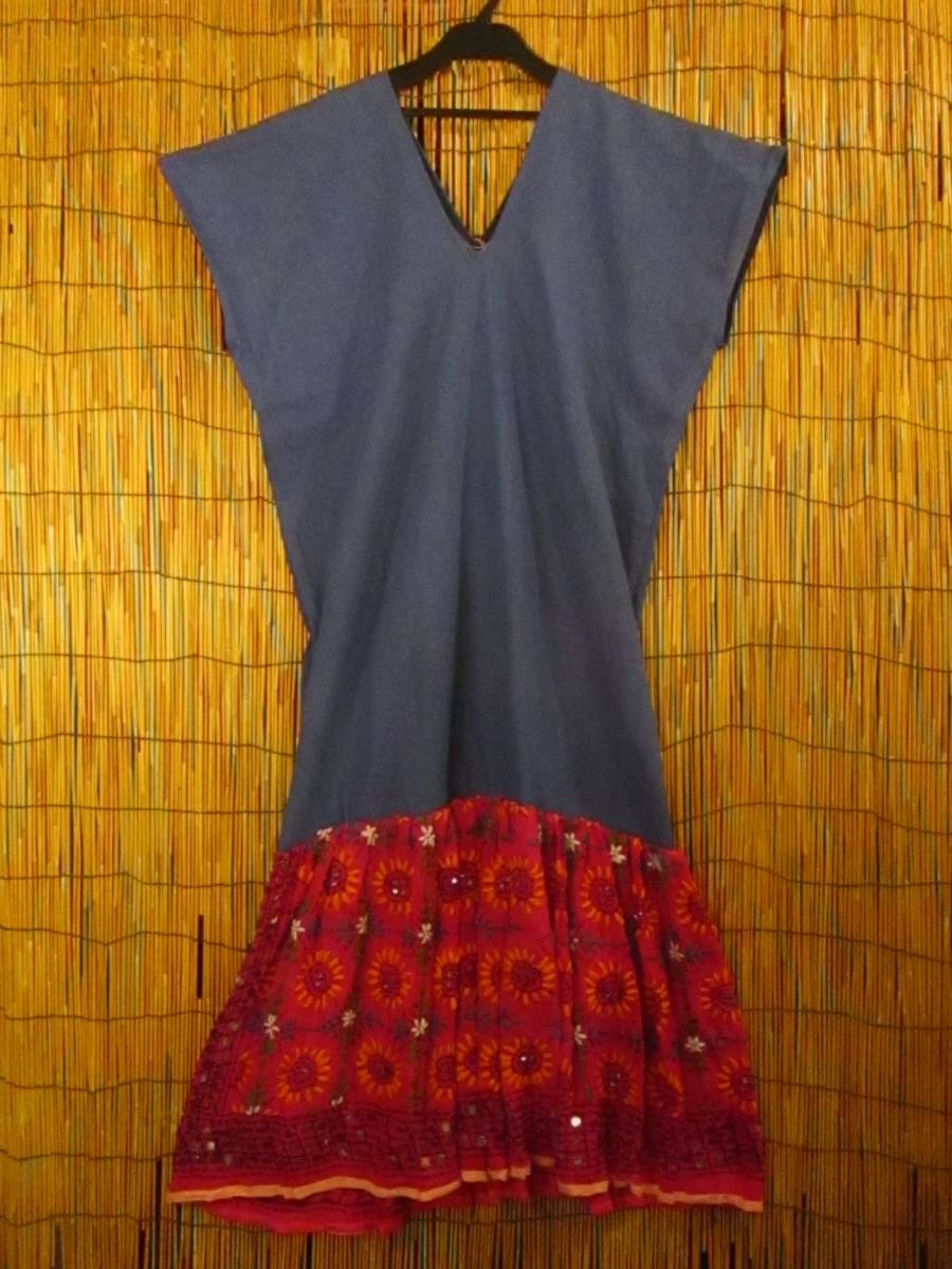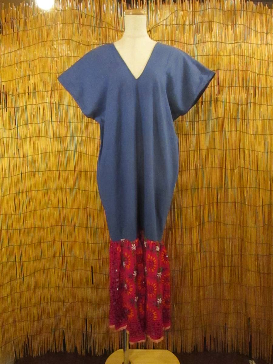 【送料込み/SALE】②訳あり*新品*ライトオンデニム生地+インドシフォン&ハンドステッチ*ポンチョ風*ロングワンピース MAJAM