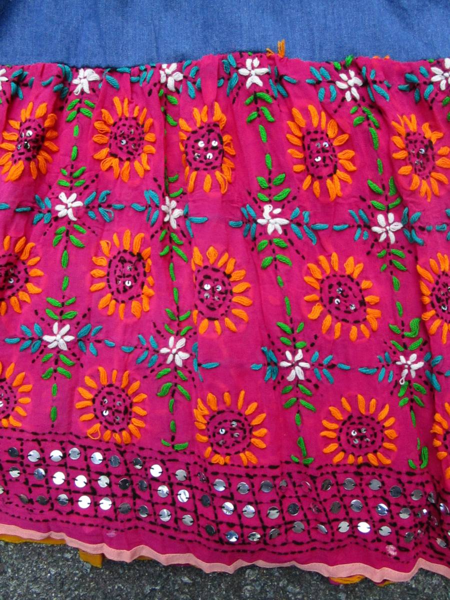 インド製品でステッチ部分は全て手刺繍である為、多少の解れやチャコペン跡がございます。