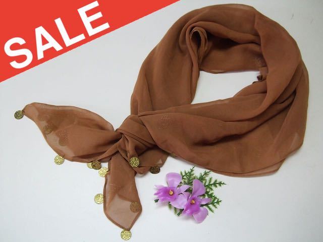 (^_^)絶品/大判スカーフ/Cuess Club?/ケスクラブ?/無地系/茶色/ブラウン/シースルー/S6