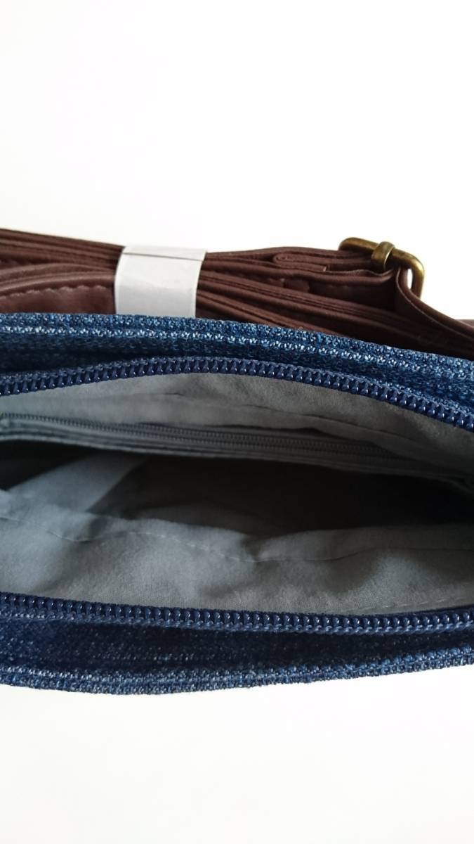 肩ひもは取り外しはできませんが、内側にオープン&ファスナーポケット付き