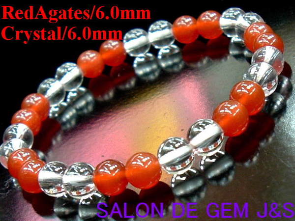 【新品】【古代七宝】【気力・体力】【高級天然赤メノウ&極上天然ブラジル産クリスタル 風水・開運ブレスレット】【A 6.0mm/C 6.0mm】【内径:約15cm】【浄化済商品】【赤字大処分】【本数限定】【包装袋入り】【製作元オークション】