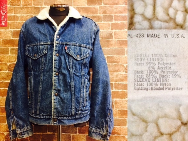 ★実寸L/USA製!80'sヴィンテージリーバイス.Levi's70508.裏ボア付きデニムJKT.古着.Vintage.ルードバイカーGジャン西海岸サーフスタイル/Y