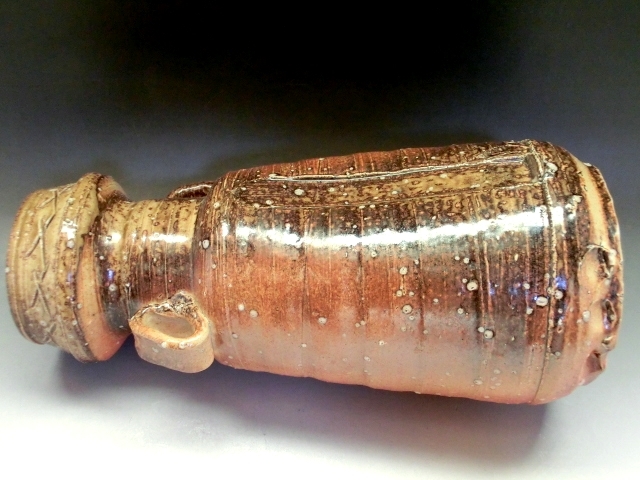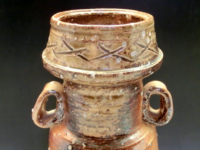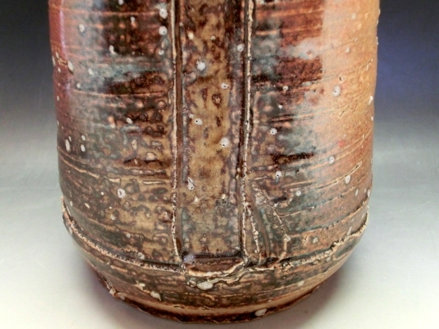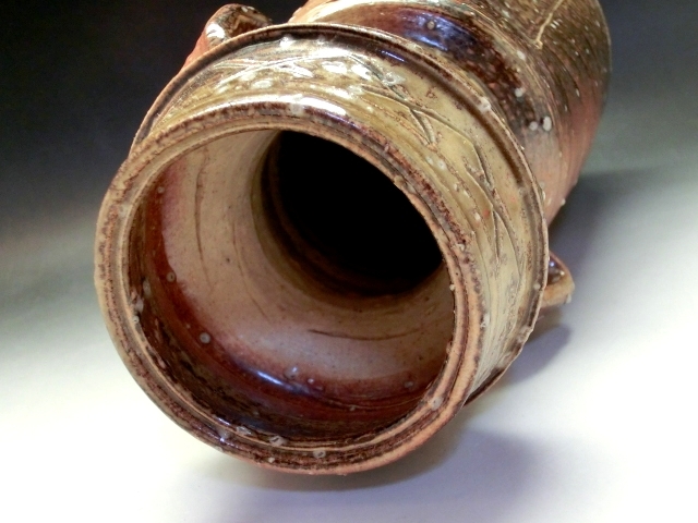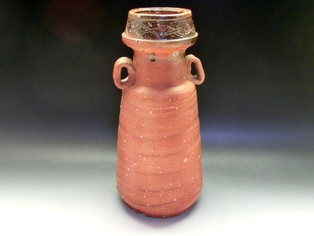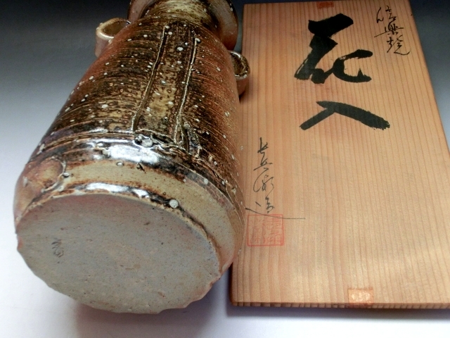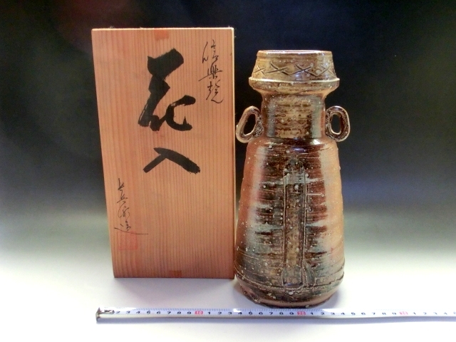 花瓶■信楽焼 耳付き 箆目 ヘラ目 花器 花入れ 作家物 桐共箱 古美術 時代物 骨董品■