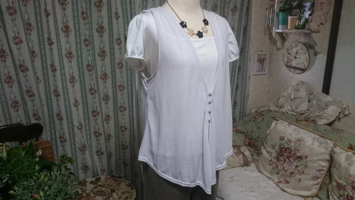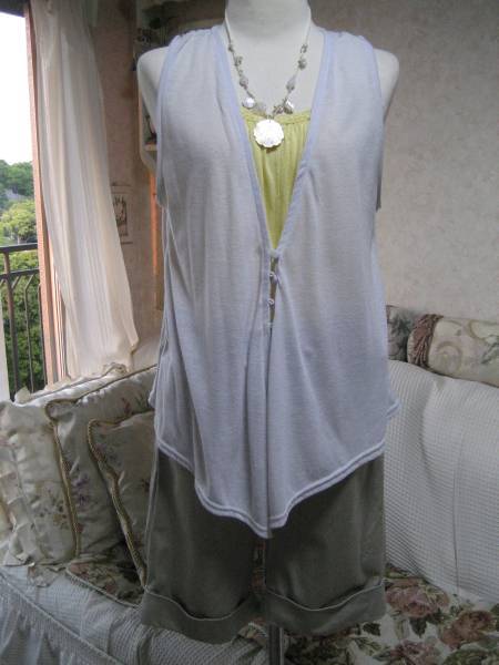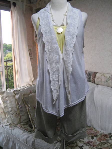 即決新品タグ外しbianca maria 春夏用薄手グレーベスト グレージレ ストール付 ビアンカマリア お洒落にアレンジ♪ ノースリーブベスト