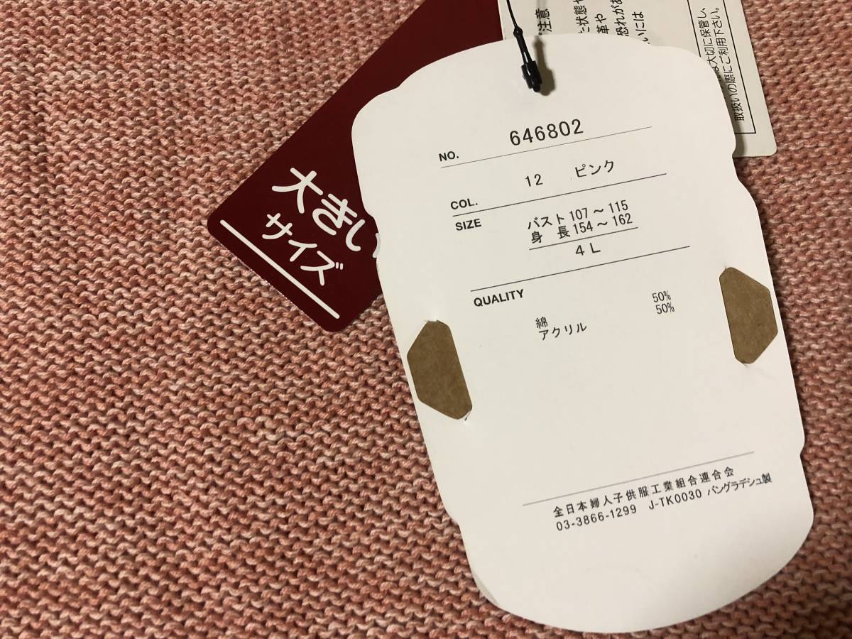 ドルマン袖 ニット★4L★ピンク★大きいサイズ