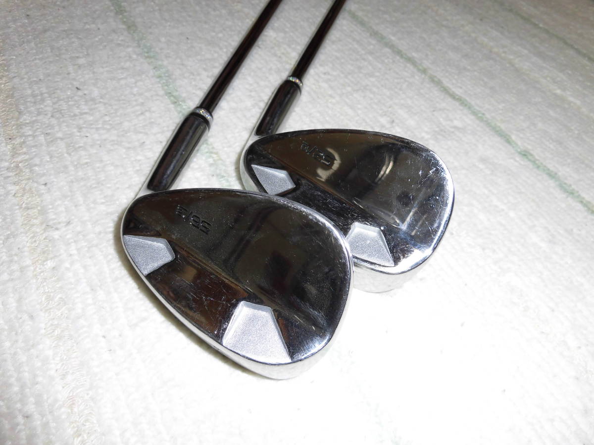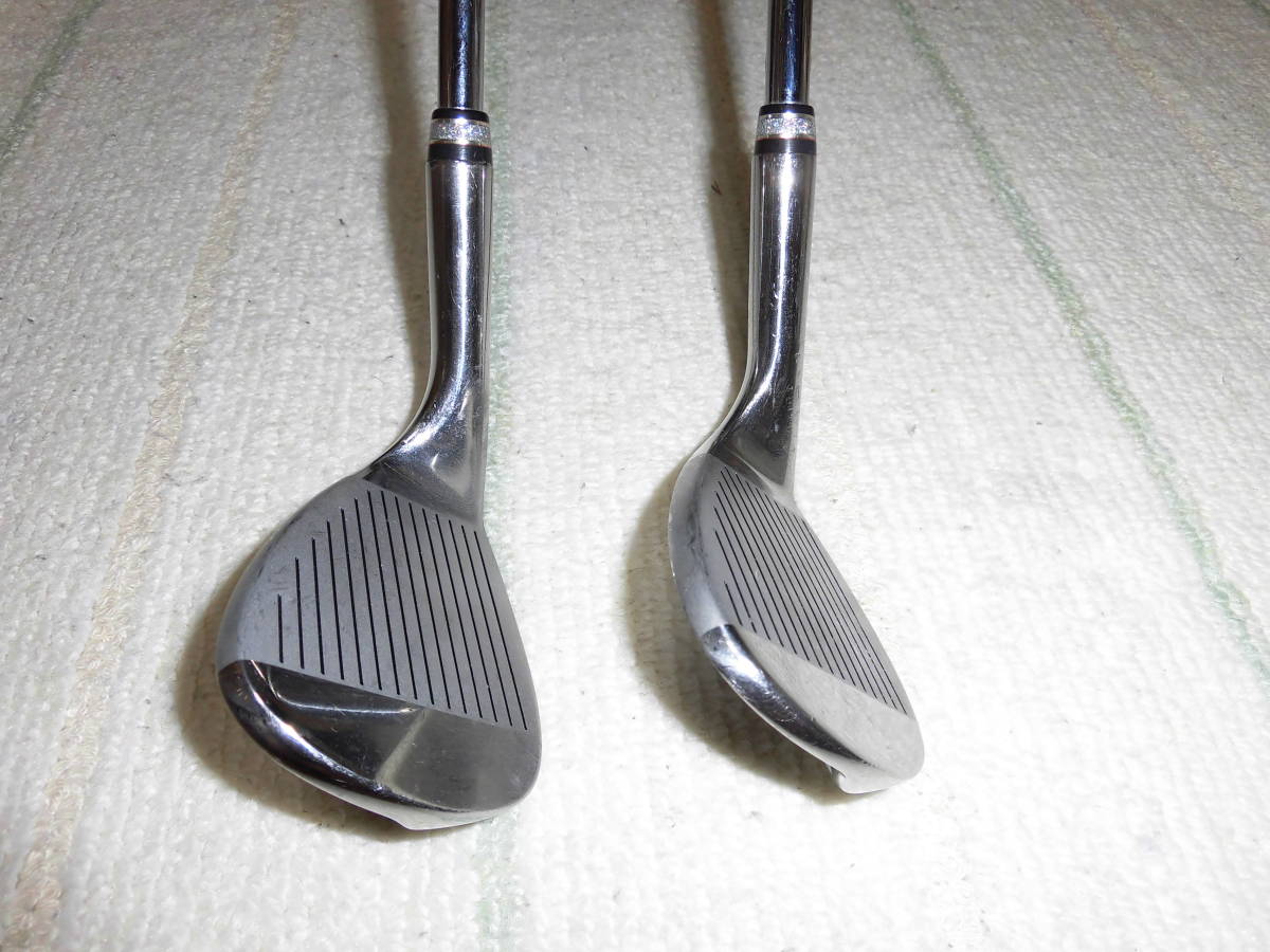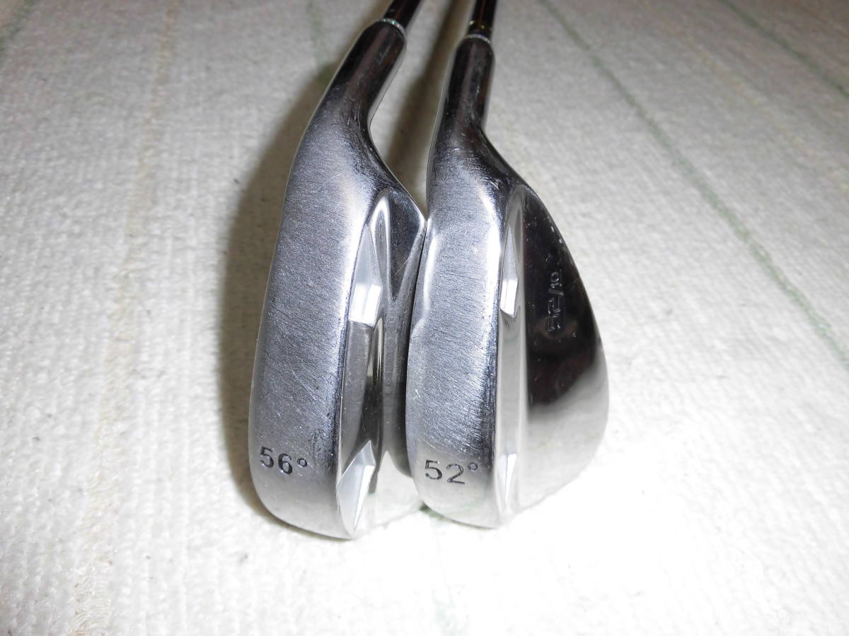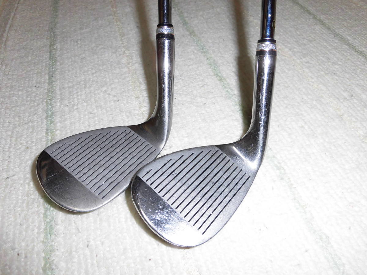 ノーブランドウェッジ 52°・56°2本です。ロフト52°・35.5inクラブ重量458g(簡易ハカリ)ロフト56°・35.0inクラブ重量460g(簡易ハカリ)。シャフトは、オリジナルスチールです。グリップは、Professonalにて充分使用可能です。フェース・ソール部分、通常使用にて薄いあたり傷・擦り傷がありますが、使用の割には綺麗な部類です。(私感)。状態は写真にて判断願います。ノークレーム・ノーリターンで願います。神経質な方:新規・評価マイナスな方は入札お断りします。消費税・落札手数料は要りません、落札代金はYahooかんたん決済でお願いします。配送は、ヤフネコで対応します。(送料負担をお願いします)