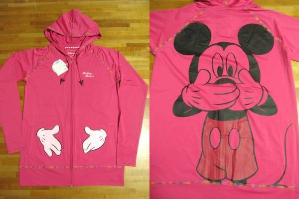 *送料無料*新品*M*ミッキーマウス*ラッシュガード*ピンク*UPF50+*吸汗速乾*Disney*バックプリント*