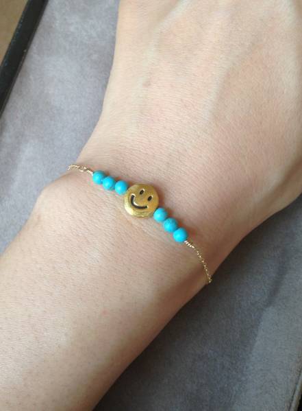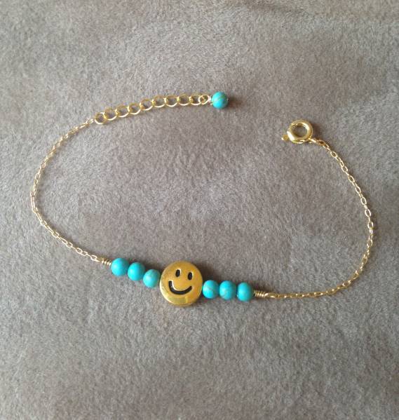 ◆スマイルターコイズブレスレット◆ゴールド ブルースマイリー ニコちゃん smile 華奢チェーン にこちゃん メタル 大人可愛い カジュアル