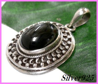 シルバー925銀の天然石ブラックスター ペンダントtypeB