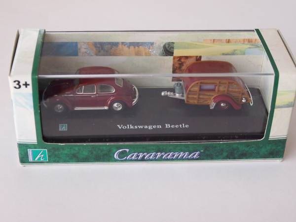 Cararama カララマ 1/72 VW Beetle With Caravan DARK RED