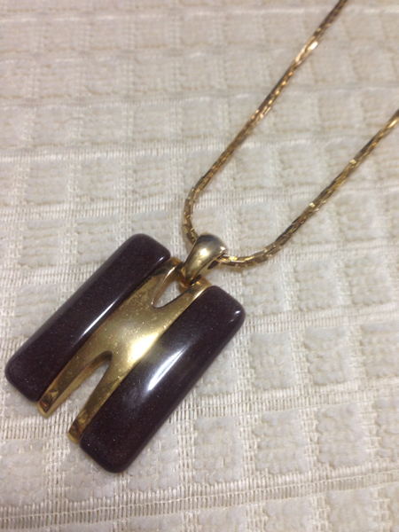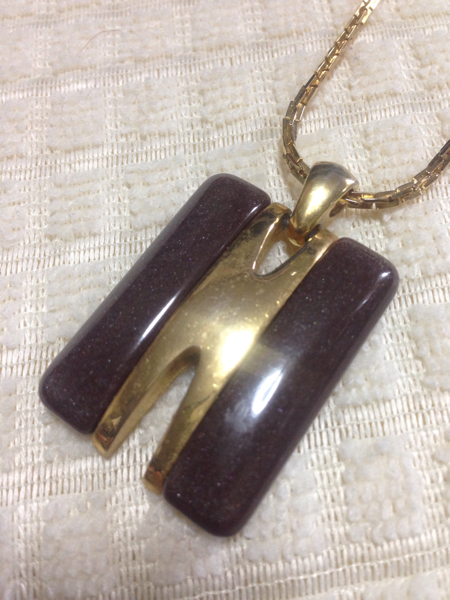 アンティーク、天然石トップのペンダントネックレスです、トップのサイズは37×30ミリ、チェーンの長さはスネークチェーン66センチです