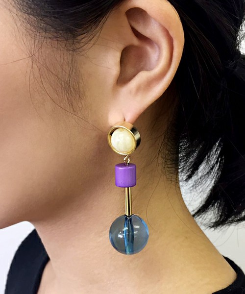 15STAIRS BY ST キャンディスウィングピアス 大振り レトロ アクリル ぶら下がり クリア 青 紫 ゴールド 金